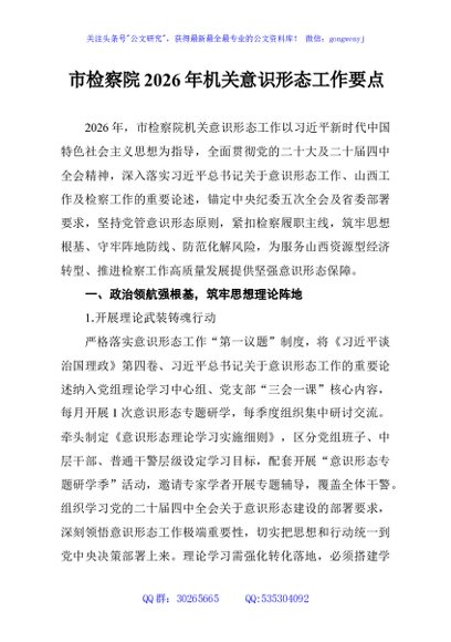 / 市检察院2026年机关意识形态工作要点