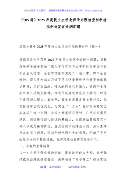 / (185篇)2025年度民主生活会班子对照检查材料检视剖析发言提纲汇编