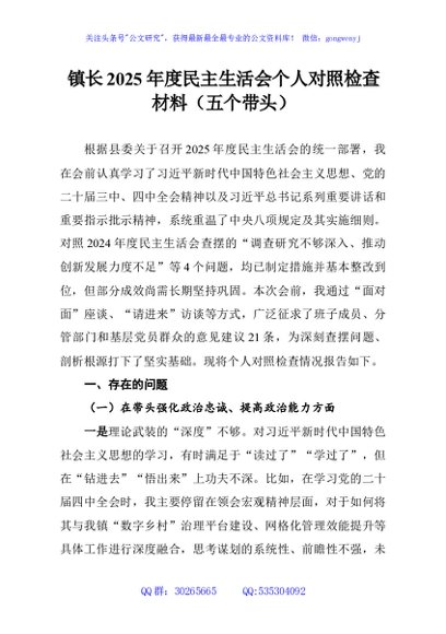 / 镇长2025年度民主生活会个人对照检查材料(五个带头)
