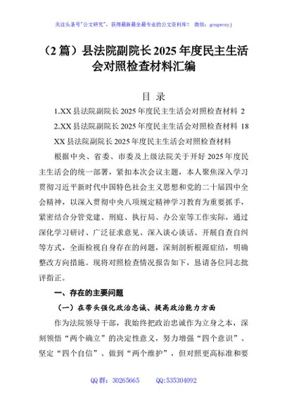 (2篇)县法院副院长2025年度民主生活会对照检查材料汇编