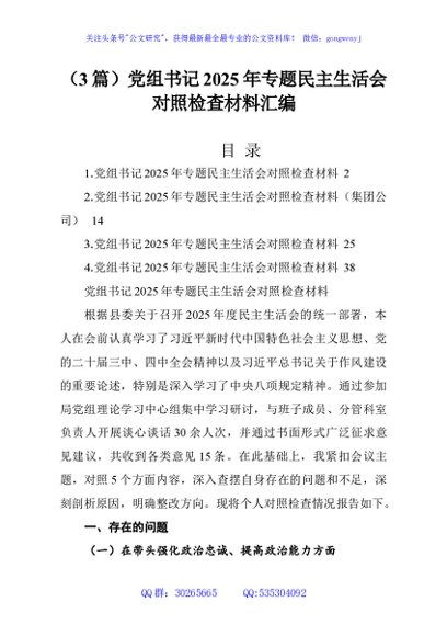 / (3篇)党组书记2025年专题民主生活会对照检查材料汇编
