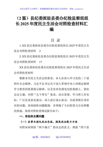 (2篇)县纪委派驻县委办纪检监察组组长2025年度民主生活会对照检查材料汇编