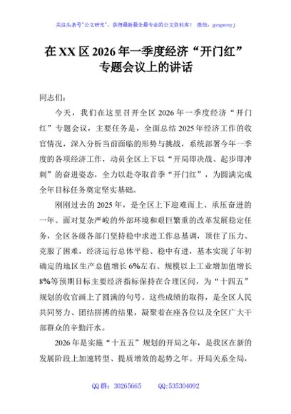 未生成预览图,长按二维码添加 在XX区2026年一季度经济“开门红”专题会议上的讲话 - 公文研究