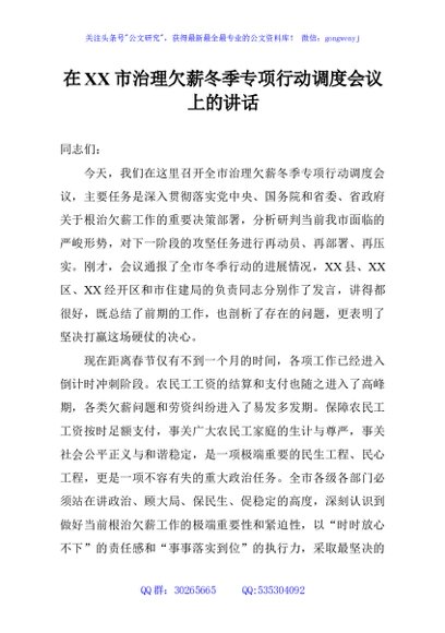 未生成预览图,长按二维码添加 在XX市治理欠薪冬季专项行动调度会议上的讲话 - 公文研究