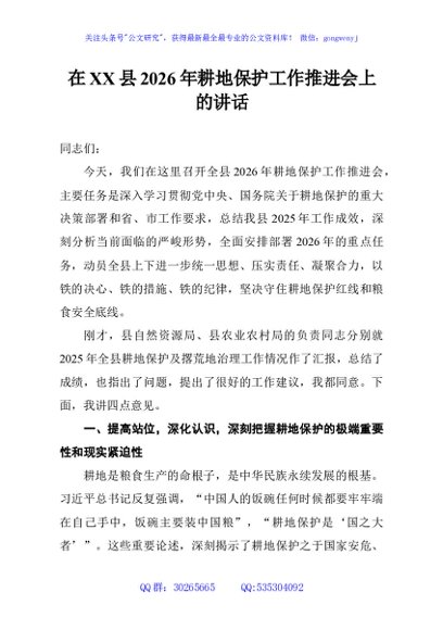 / 在XX县2026年耕地保护工作推进会上的讲话
