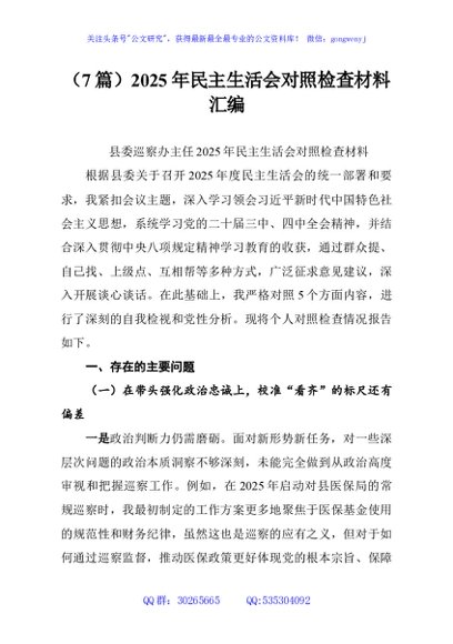 / (7篇)2025年民主生活会对照检查材料汇编