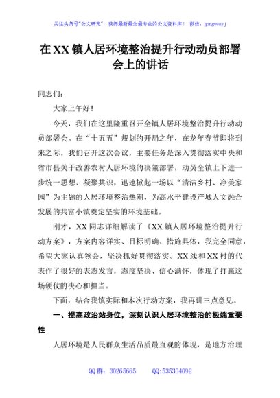 未生成预览图,长按二维码添加 在XX镇人居环境整治提升行动动员部署会上的讲话 - 公文研究