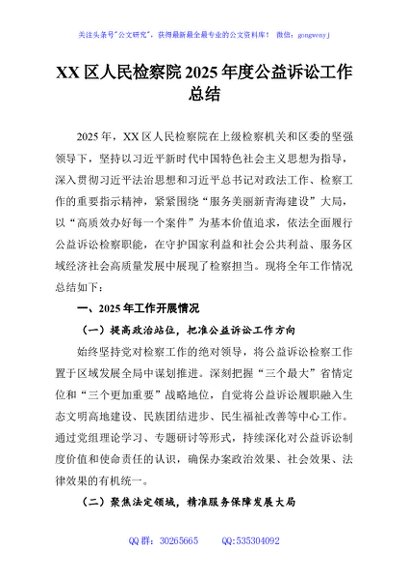 / XX区人民检察院2025年度公益诉讼工作总结
