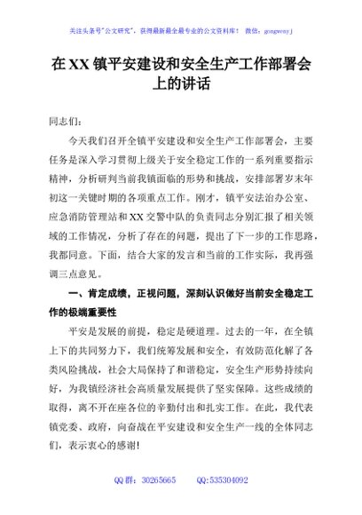 / 在XX镇平安建设和安全生产工作部署会上的讲话