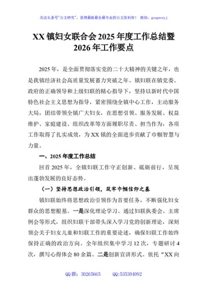 / XX镇妇女联合会2025年度工作总结暨2026年工作要点