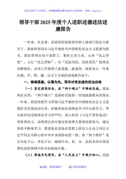/ 领导干部2025年度个人述职述德述法述廉报告
