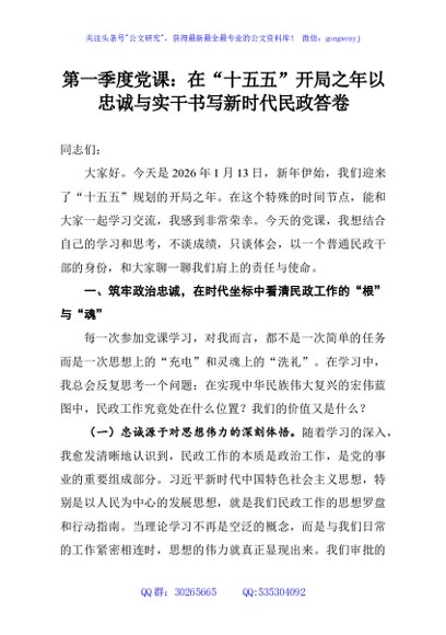 / 第一季度党课:在“十五五”开局之年以忠诚与实干书写新时代民政答卷