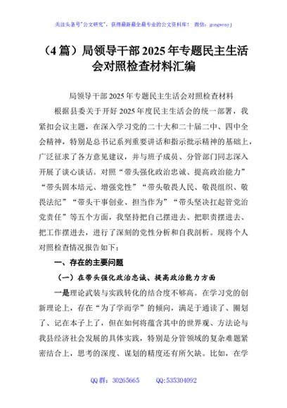 / (4篇)局领导干部2025年专题民主生活会对照检查材料汇编