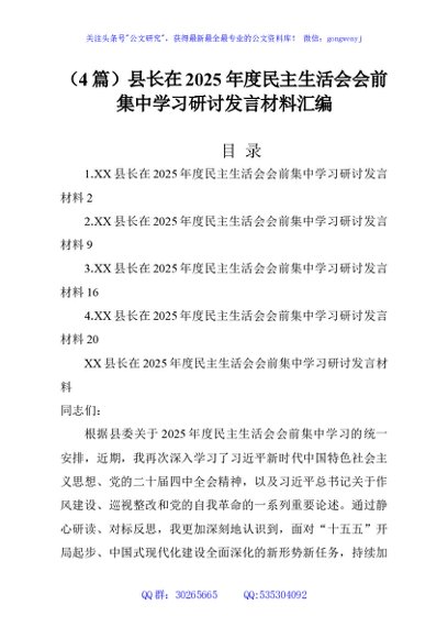 / (4篇)县长在2025年度民主生活会会前集中学习研讨发言材料汇编