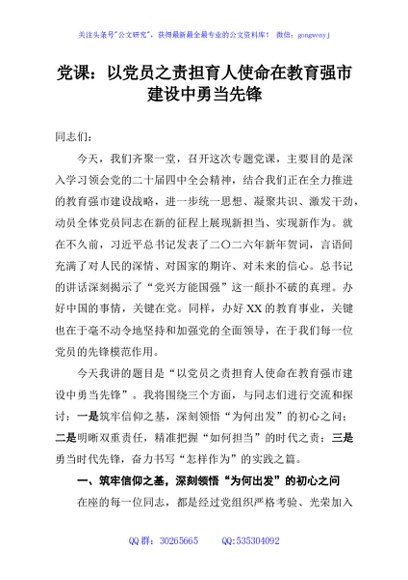 党课:以党员之责担育人使命在教育强市建设中勇当先锋