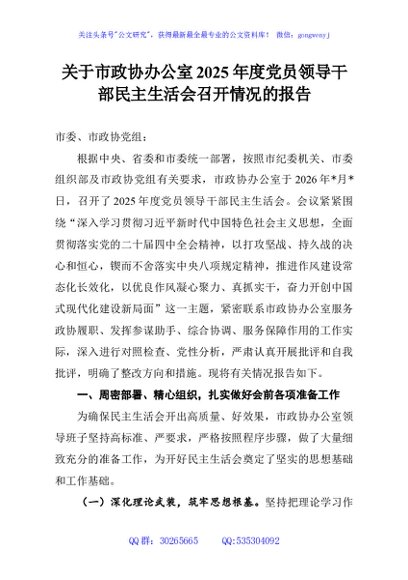 未生成预览图,长按二维码添加 关于市政协办公室2025年度党员领导干部民主生活会召开情况的报告 - 公文研究