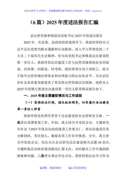 未生成预览图,长按二维码添加 (6篇)2025年度述法报告汇编 - 公文研究