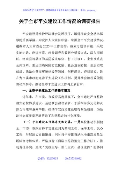 / 关于全市平安建设工作情况的调研报告