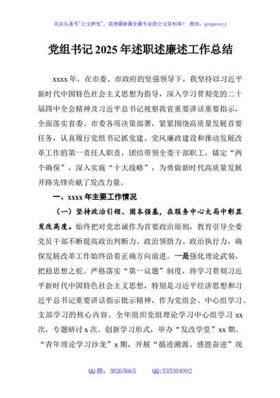 党组书记2025年述职述廉述工作总结