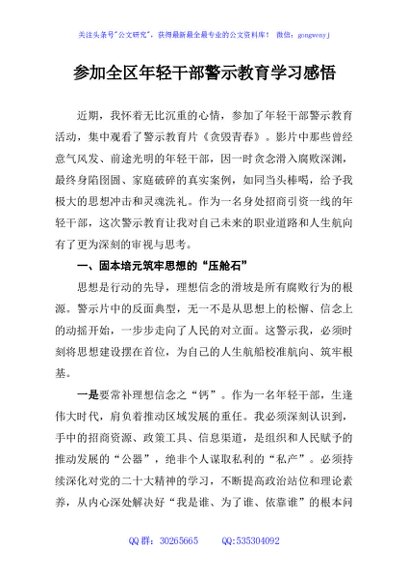 / 参加全区年轻干部警示教育学习感悟