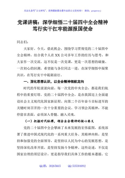 / 党课讲稿:深学细悟二十届四中全会精神笃行实干扛牢能源报国使命