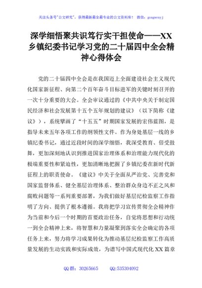 / 深学细悟聚共识笃行实干担使命——XX乡镇纪委书记学习党的二十届四中全会精神心得体会