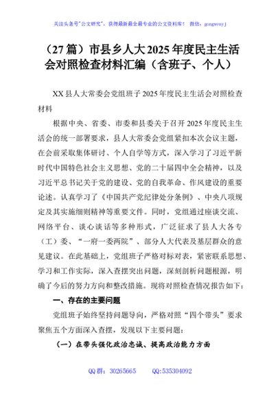 (27篇)市县乡人大2025年度民主生活会对照检查材料汇编(含班子、个人) - 公文研究