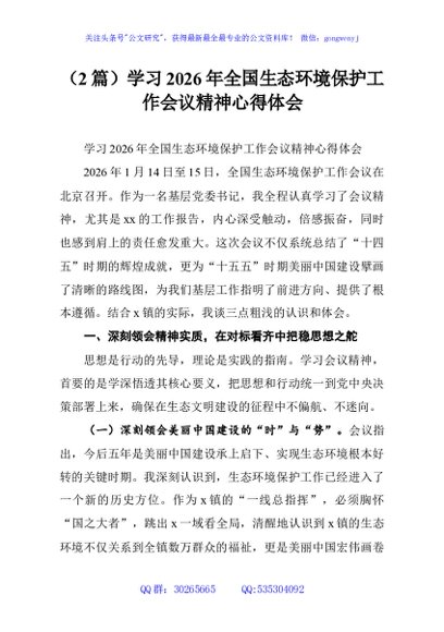 未生成预览图,长按二维码添加 (2篇)学习2026年全国生态环境保护工作会议精神心得体会 - 公文研究