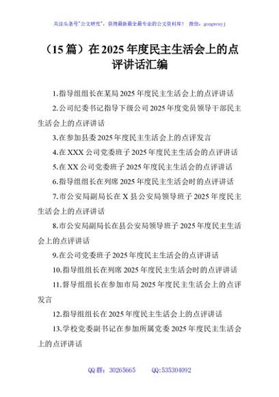 / (15篇)在2025年度民主生活会上的点评讲话汇编