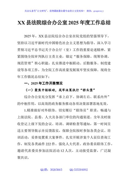 / XX县法院综合办公室2025年度工作总结