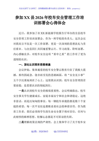 / 参加XX县2026年校车安全管理工作培训部署会心得体会