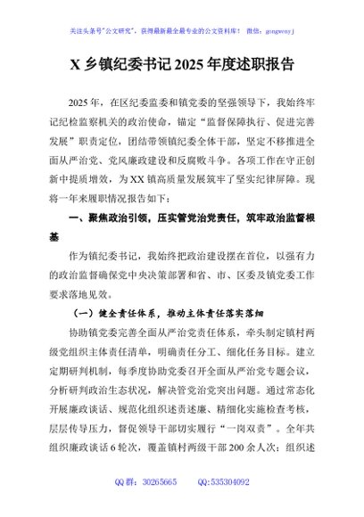 / X乡镇纪委书记2025年度述职报告