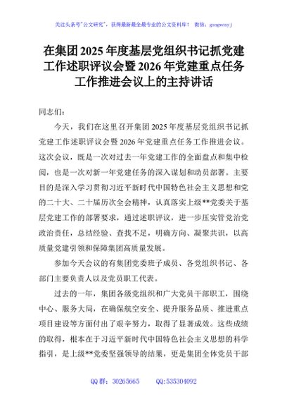 / 在集团2025年度基层党组织书记抓党建工作述职评议会暨2026年党建重点任务工作推进会议上的主持讲话