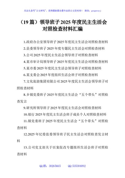 未生成预览图,长按二维码添加 (19篇)领导班子2025年度民主生活会对照检查材料汇编 - 公文研究