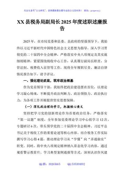 / XX县税务局副局长2025年度述职述廉报告