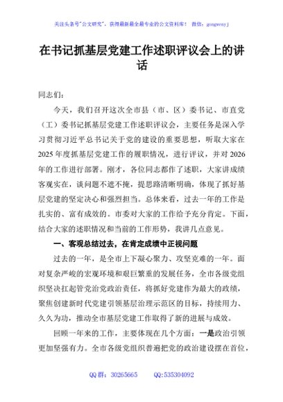 / 在书记抓基层党建工作述职评议会上的讲话
