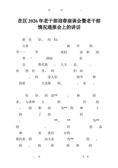 / 在区2026年老干部迎春座谈会暨老干部情况通报会上的讲话