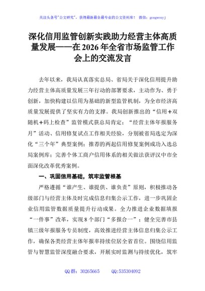 / 深化信用监管创新实践助力经营主体高质量发展——在2026年全省市场监管工作会上的交流发言
