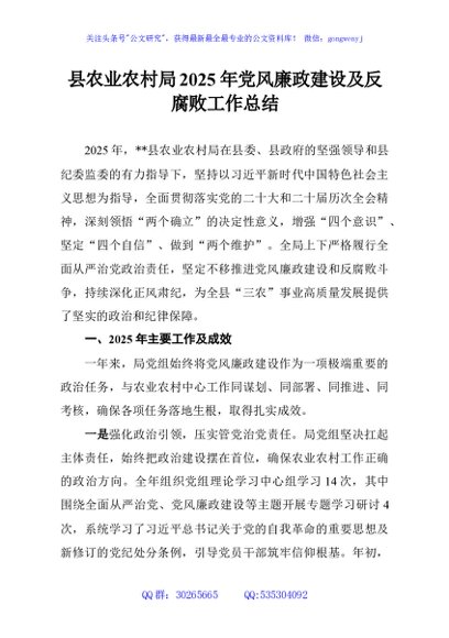 / 县农业农村局2025年党风廉政建设及反腐败工作总结