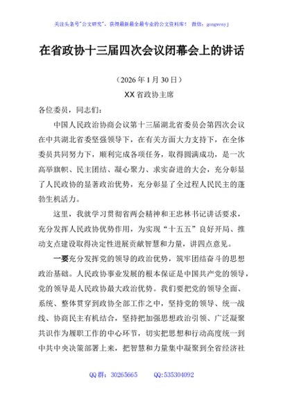 / 在省政协十三届四次会议闭幕会上的讲话