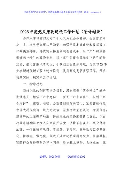 / 2026年度党风廉政建设工作计划(附计划表)