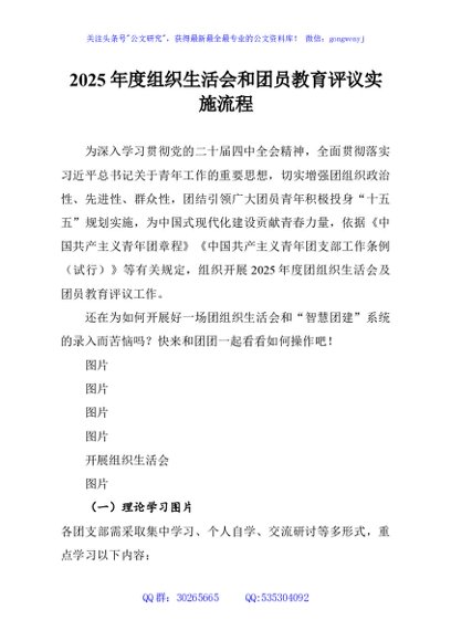 / 2025年度组织生活会和团员教育评议实施流程