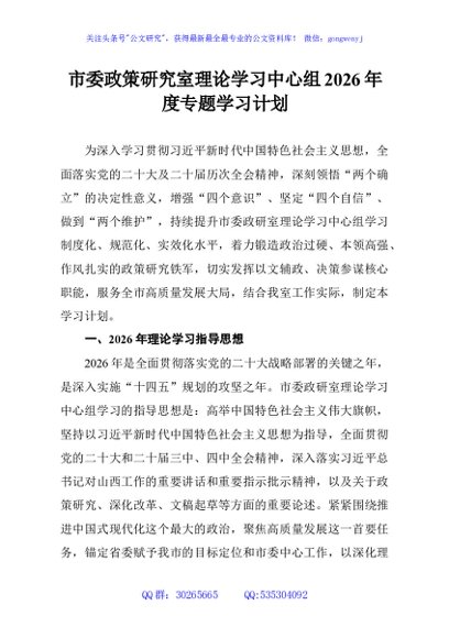 / 市委政策研究室理论学习中心组2026年度专题学习计划