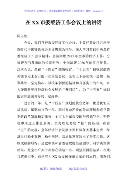 / 在XX市委经济工作会议上的讲话