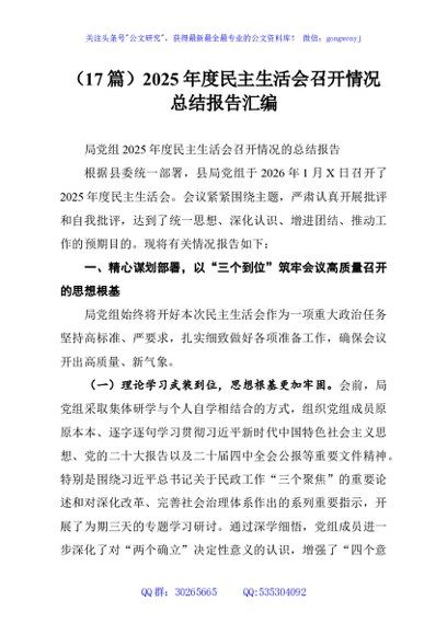 / (17篇)2025年度民主生活会召开情况总结报告汇编