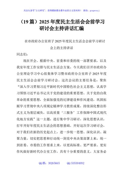 / (19篇)2025年度民主生活会会前学习研讨会主持讲话汇编