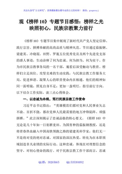 / 观《榜样10》专题节目感悟:榜样之光映照初心,民族宗教聚力前行