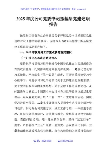 未生成预览图,长按二维码添加 2025年度公司党委书记抓基层党建述职报告 - 公文研究