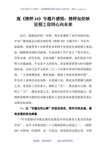 / 观《榜样10》专题片感悟:榜样如炬映征程工信同心向未来