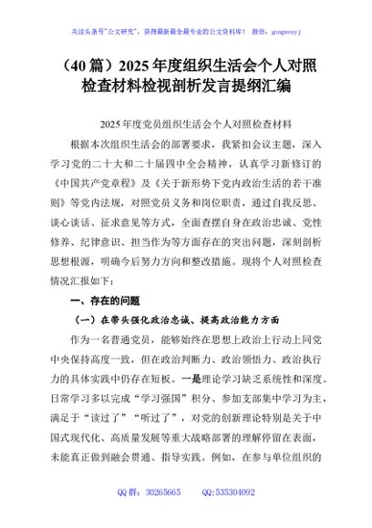 / (40篇)2025年度组织生活会个人对照检查材料检视剖析发言提纲汇编
